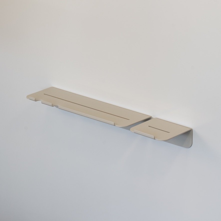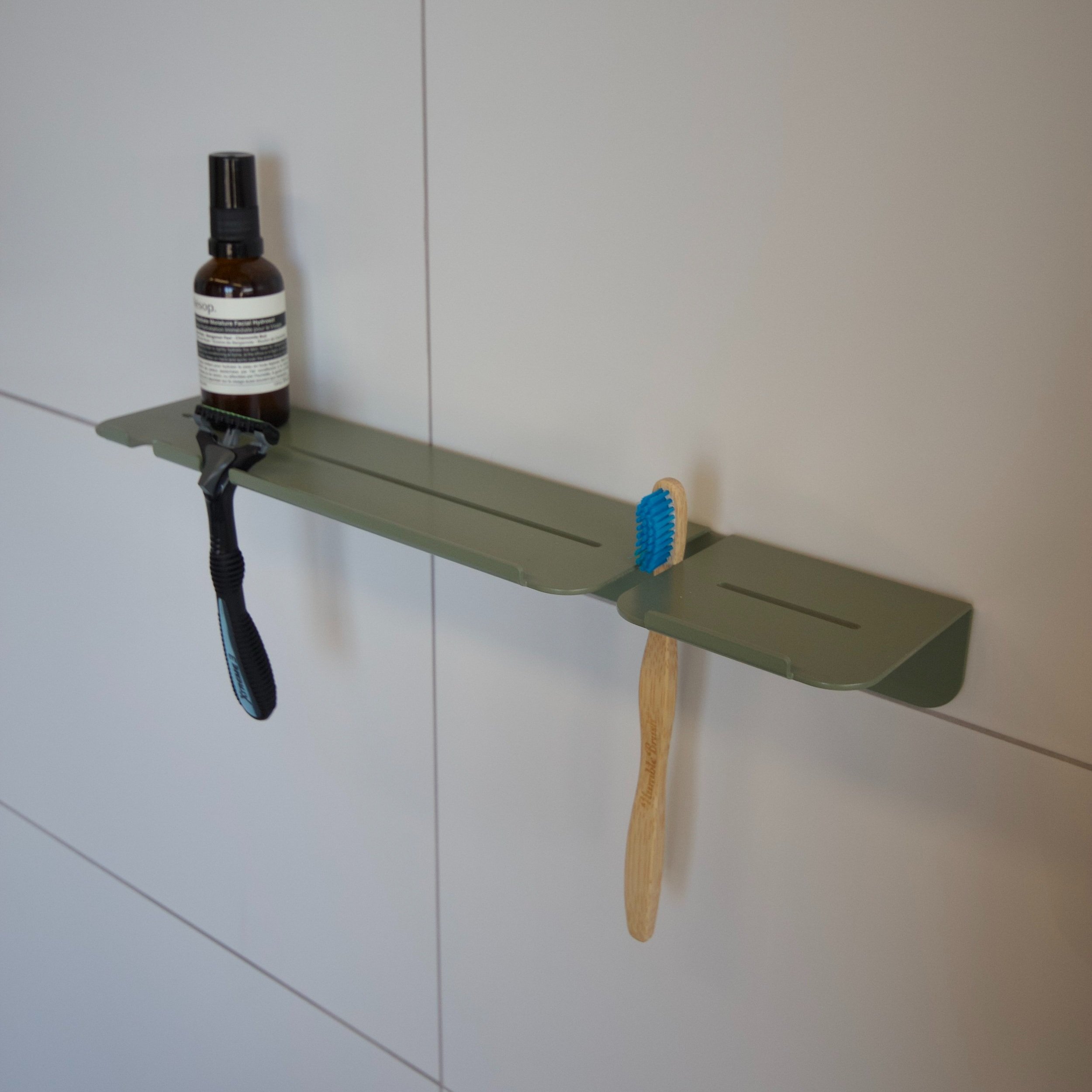 Iplo is a minimalist folded metal shower shelf that affixes to the shower wall elegantly with 3M VHB tape. Its form expresses its functionality through relief pattern drainage holes and two hanging-razor holders, which double as loofah or gel bottle hooks. The 10mm gap in the shelf not only creates an aesthetic divide but also adds functionality, perfectly fitting a toothbrush.