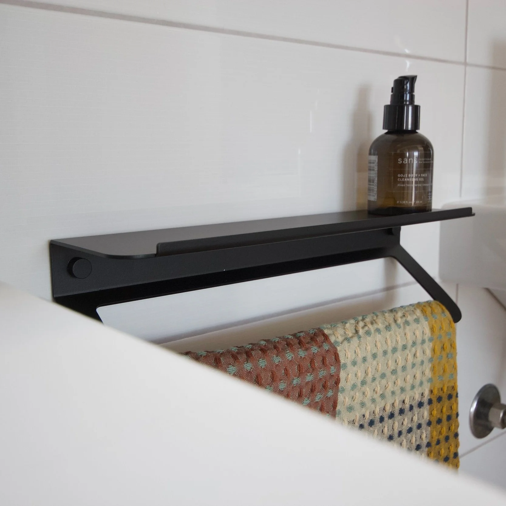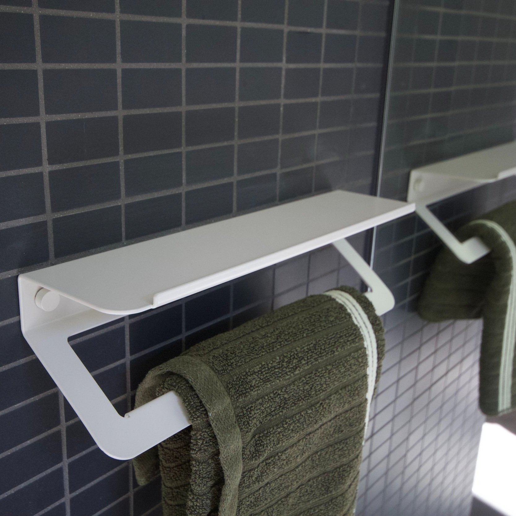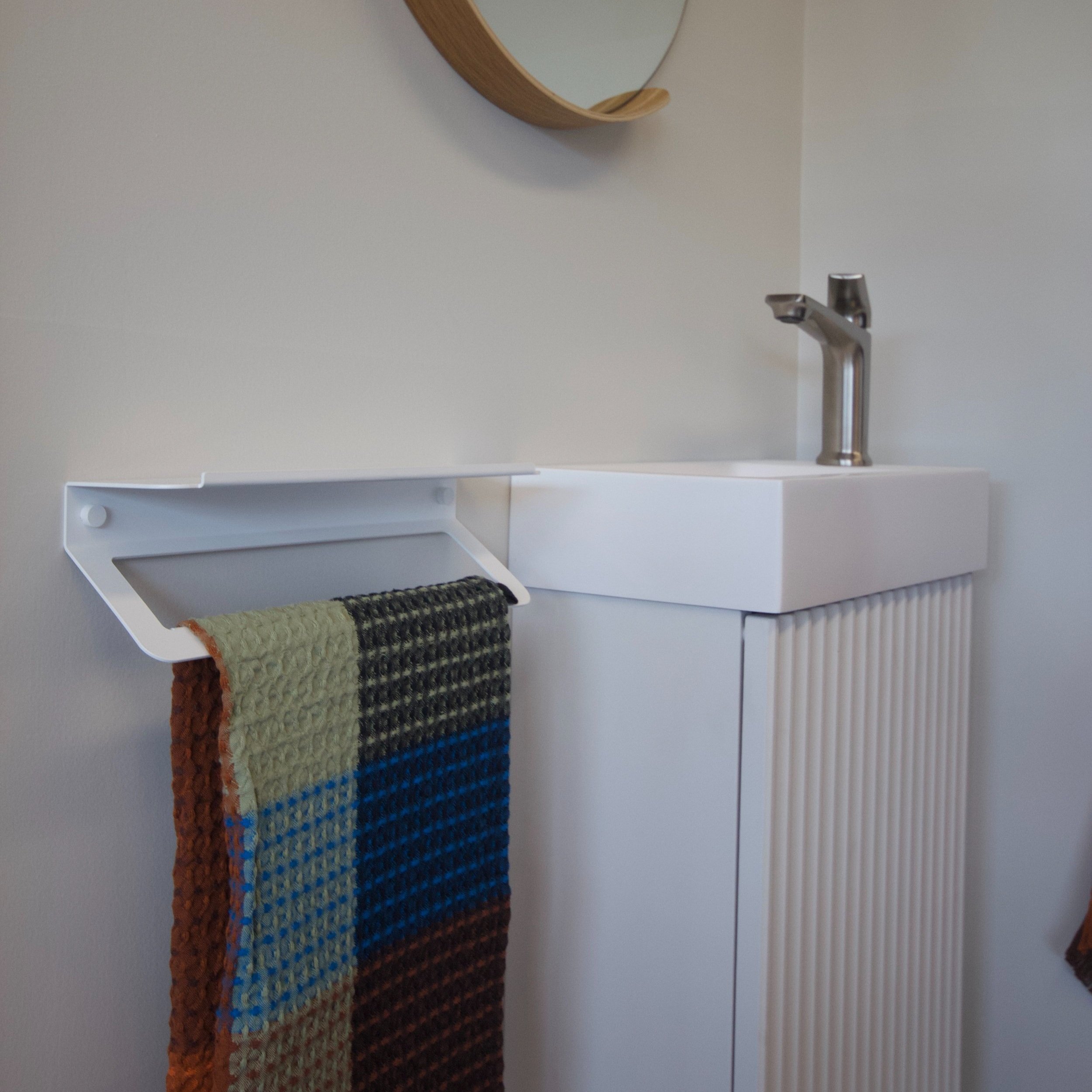 The 55 ̊ bend in our hand towel holder allows for ease of interaction without protruding into the space. The folded 2mm powder-coated aluminium allows for no rust or corrosion, while harmoniously balancing a crisp yet robust design.
